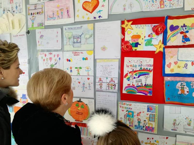 Con la collaborazione delle docenti abbiamo spiegato ai bambini la realtà della clownterapia, non una semplice animazione, ma un vero lavoro di psicologia, atteggiamenti, gag, prove, costumi e trucchi che, messe insieme, hanno lo scopo di suscitare emozioni in coloro che assistono a questi istanti, che si tratti di case di riposo, ospedali, o passanti per strada, poco importa, ad ogni uscita va dedicata la massima preparazione ed organizzazione.