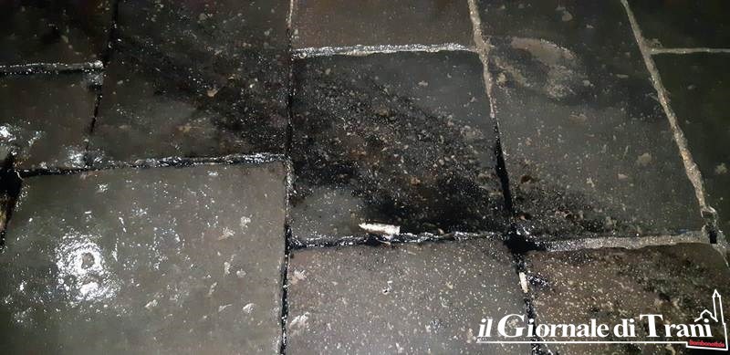 Una lunga scia di olio, quasi sicuramente provocata dalla rottura della coppa di un veicolo, è stata presente nella tarda serata di ieri in via Mario Pagano, nel tratto compreso fra via Sant'Agostino e via Beltrani.
