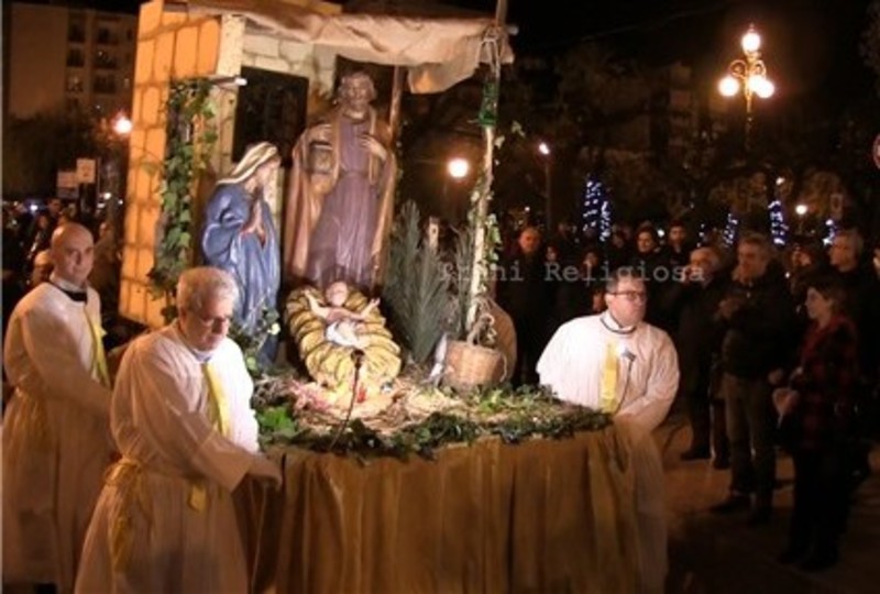 La processione con l'effigie della Santa Famiglia di Nazareth conclude il lungo percorso delle feste esterne 2018: come da tradizione nel giorno della vigilia di Natale, dalla chiesa di San Giuseppe di Trani, organizzata dalla omonima confraternita, viene portata per le vie principali del centro il carro con la Grotta della Natività.