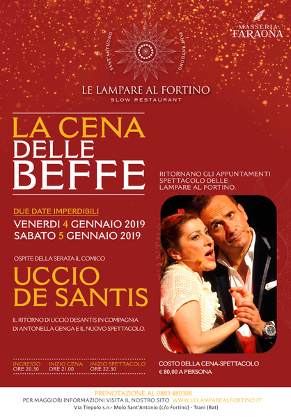 Ritornano gli appuntamenti spettacolo delle Lampare al fortino, con La cena delle beffe, che si terrà anche oggi, sabato 5 gennaio.