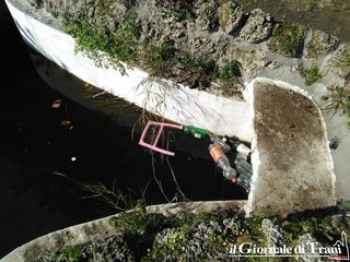 Diverse bottiglie di vetro e plastica, oltre che un triciclo, sono stati inoltre conferiti nella vasca, in stato di abbandono.