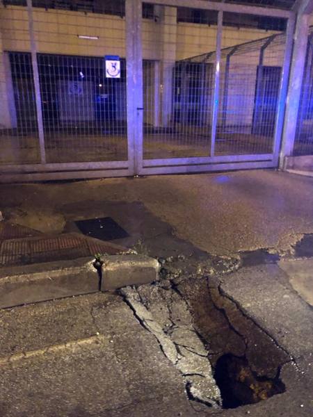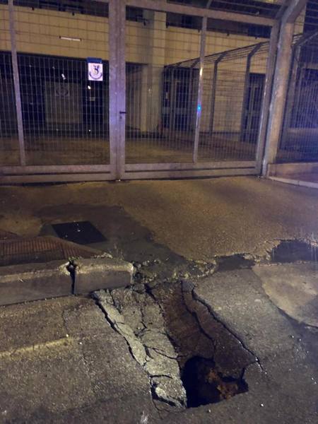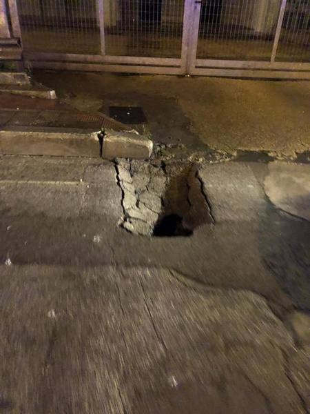 La causa, le infiltrazioni dovute alla pioggia incessante, in corrispondenza di un tombino e relative condotte idriche, per effetto della quale la superficie stradale ha lasciato il posto ad una voragine particolarmente profonda, anche se di circonferenza fortunatamente limitata.