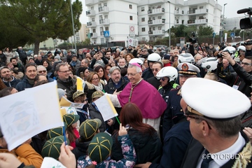 Fu accolto a Trani in Piazza Madre Teresa di Calcutta, si recò in visita all’opera di carità “Dormitorio Mons. Giovan Battista Pichierri”, successivamente in Piazza S. Regia Udienza per il salto alle autorità civili e militari, nella Chiesa di S. Giovanni per il saluto al Clero diocesano e religioso,ai diaconi, ai seminaristie ai rappresentanti della vita consacrata, poi nella Basilica Cattedrale per presiedere la solenne concelebrazione eucaristica per l’inizio del suo ministero pastorale.