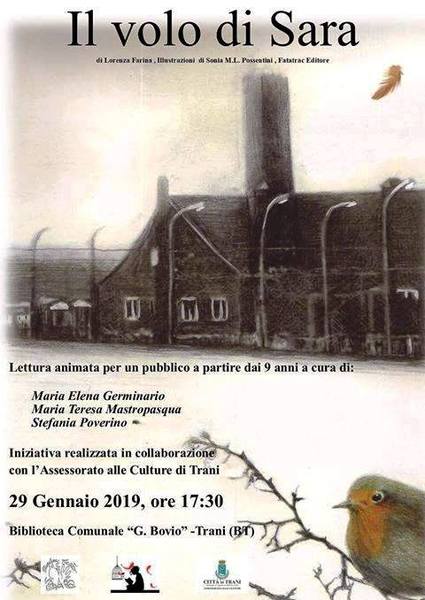 Per i giovani lettori, è organizzata la lettura de “Il volo di Sara”, uno di quei pochi albi illustrati in Italia scritto da Lorenza Farina e illustrato da Sonia Possentini che affronta il tema dei campi dei concentramento nazisti.