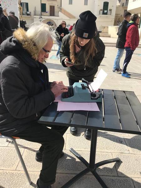 Quello di ieri può essere definito soprattutto come un evento di incontri. Un incontro tra presente e passato, dove i tanti telefoni cellulari che hanno ripreso questo particolare flash mob si sono mischiati alle preziose macchine per scrivere. Ma è stato anche un incontro tra generazioni diverse: mamme e papà a fianco dei loro figli e persone più grandi ad aiutare i più giovani alle prese con le macchine per scrivere. A tal proposito una delle immagini più belle che questa domenica ci ha regalato e che rappresenta al meglio l’incontro tra le due generazioni diverse è quella di un anziano che scrive a macchina mentre una ragazzina gli detta la sua storia leggendola dal cellulare. Un momento magico che solo la forza della scrittura ha potuto regalare.