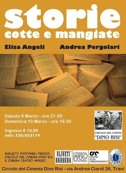 Sabato 9 marzo alle ore 21 e domenica 10 marzo alle ore 19 andrà in scena presso il circolo del cinema Dino Risi di Trani uno spettacolo, un reading interattivo curato da Andrea Pergolari con Elisa Angeli.