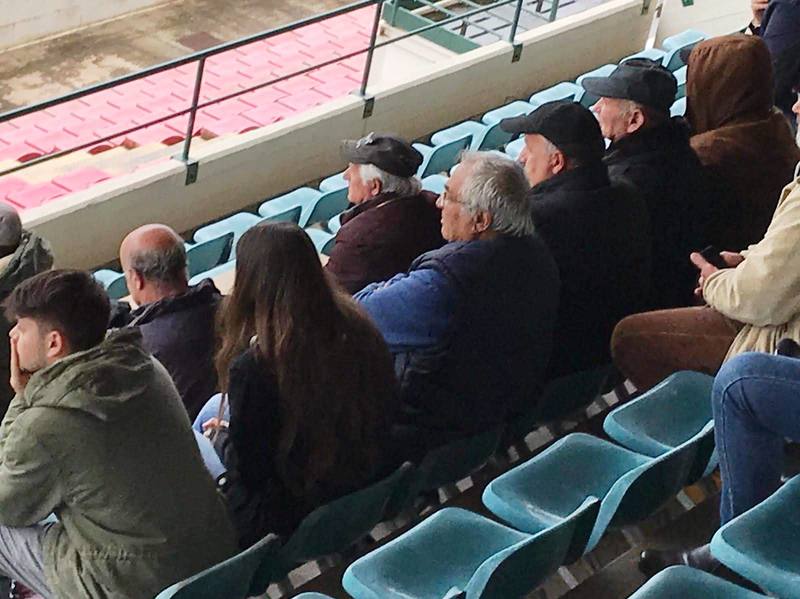 In tribuna siede il neo squalificato a lungo termine, patron Mauro Lanza.
