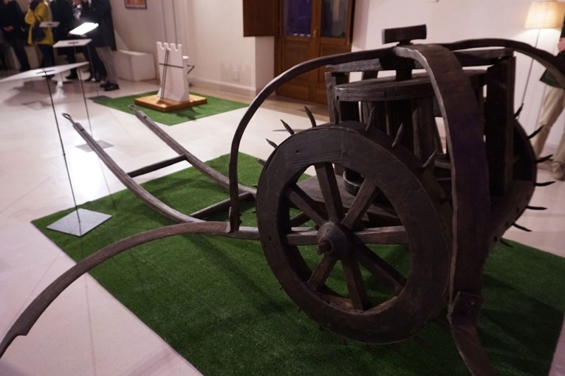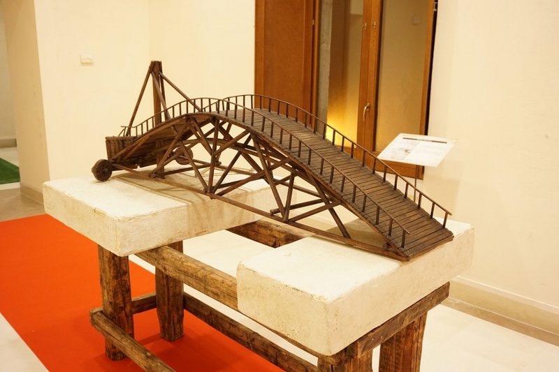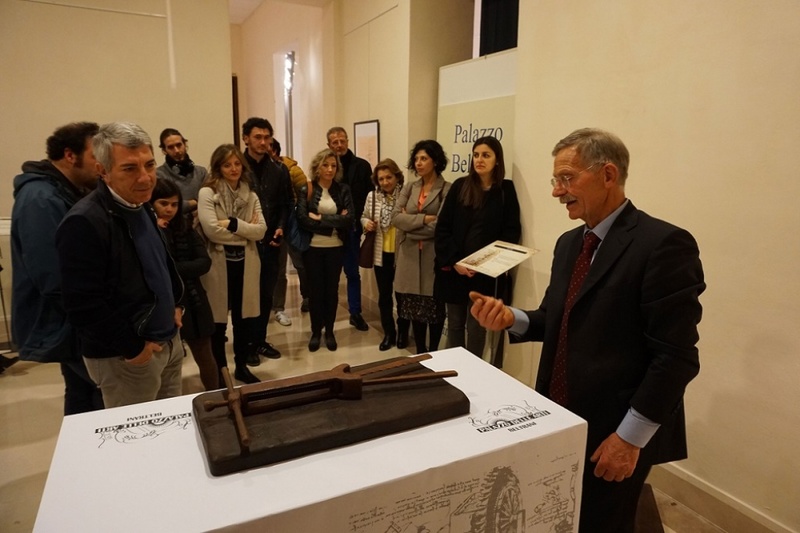 Alla conferenza è seguita la visita dell’esposizione delle macchine leonardesche con un cicerone d’eccezione, lo stesso ingegner Manisco, che ha spiegato da dove nasce la sua passione, e come è riuscito a trasporla nella costruzione di queste opere. Quella di Trani è una parte della sua collezione che ammonta ormai a 133 macchine.