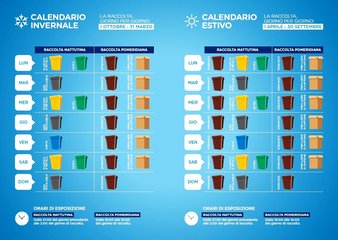 Nel calendario estivo la raccolta pomeridiana resta invariata rispetto a quella invernale, mentre si rafforza quella mattutina, che prevede il ritiro dell'organico tutti i giorni, insieme con le tipologie già precedentemente richiamate lasciandone invariato il calendario.