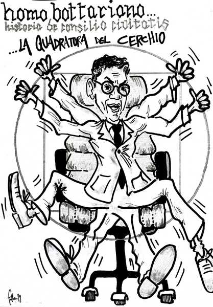 Il recente esperimento del lancio di una palla infuocata dalla balestra gigante, progettata da Leonardo da Vinci e ricostruita a Trani dall'ingegner Giuseppe Manisco, ha ispirato la nuova vignetta di Giancarlo Falco nell'ambito della sua rubrica «Tutto d'un tratto Trani». Il sindaco di Trani, Amedeo Bottaro, viene accostato all'«Homo Leonardo» con la differenza che, sullo sfondo, c'è la poltrona cui sono parsi particolarmente ancorati sia lui, sia la sua amministrazione dopo l'approvazione del bilancio e la ricostituzione della giunta.