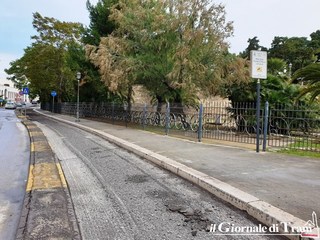 In atto da fresatura dell'intera sede ciclabile, cui seguirà la nuova bitumazione e colorazione, sia del fondo della corsia ciclabile, sia del cordolo.