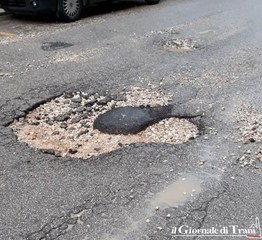 Infatti, nei pressi dell'incrocio con via Enrico De Nicola, si è formata una enorme buca che la pioggia ha progressivamente eroso ed esteso, al punto da non essere più evitabile: così, le pietre saltano dappertutto danneggiano i veicoli parcheggiati e diventano un rischio anche per i pedoni, che potrebbero essere colpiti da queste vere e proprie schegge impazzite.