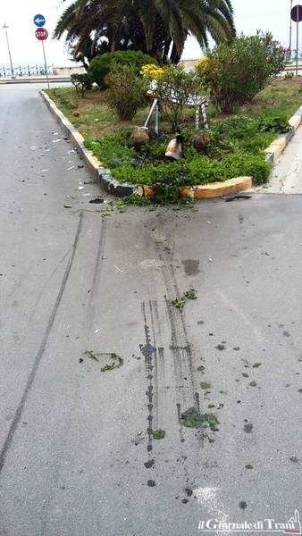 Un eccesso di confidenza del conducente con il mezzo, nel quale probabilmente era con amici, ma che adesso ha ridotto in uno stato pietoso l'aiuola, da non molto riqualificata, per riparare la quale il Comune di Trani dovrà spendere soldi pubblici senza mai probabilmente riuscire a rintracciare il responsabile. Telecamere permettendo, ove presenti.