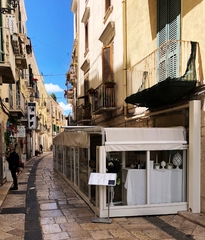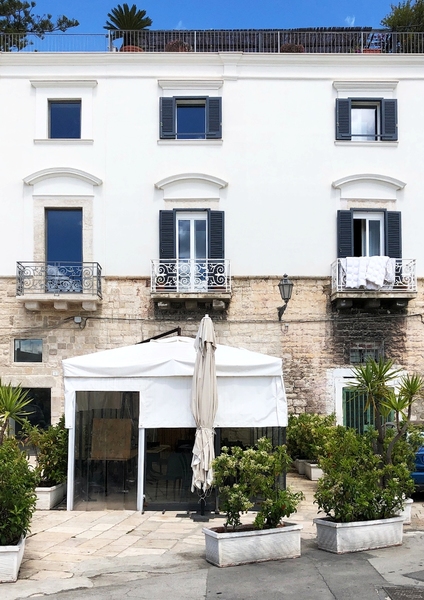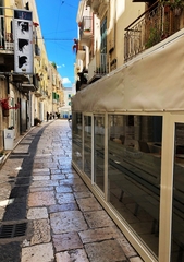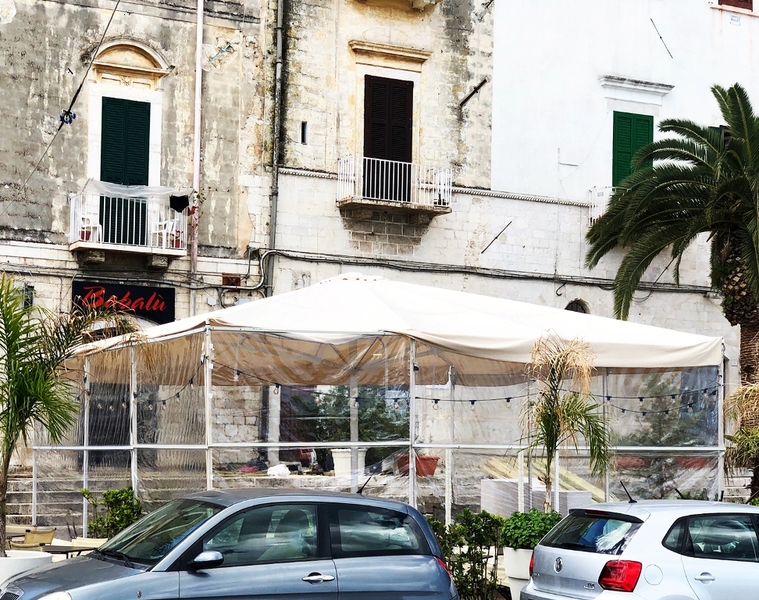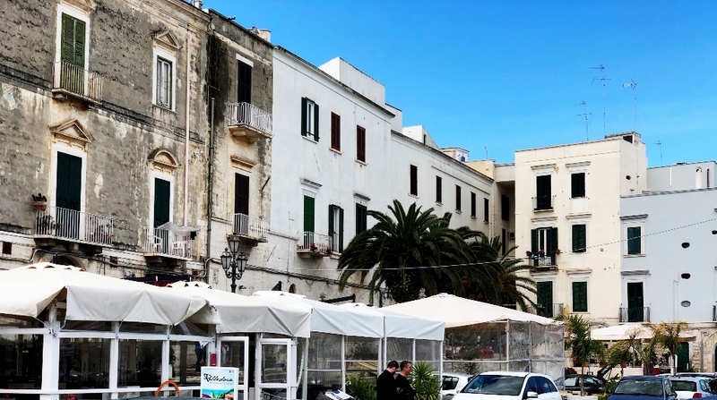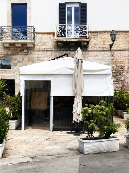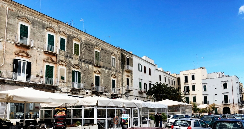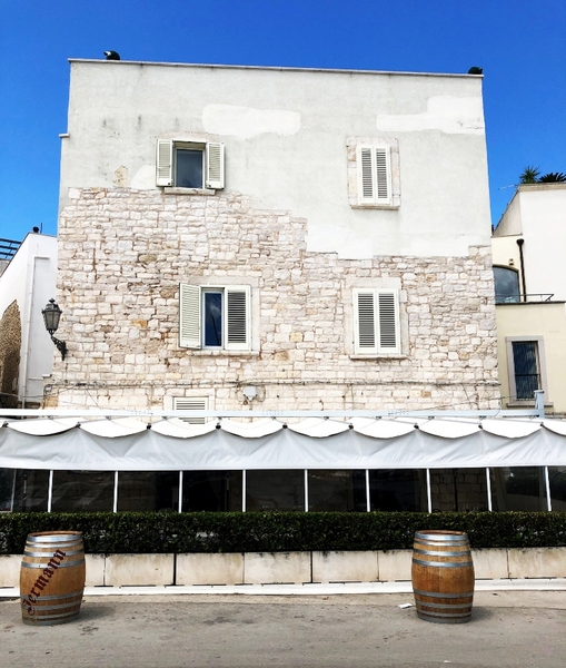 Il pvc domina rispetto alla pietra, sporge rispetto alle facciate, ne nasconde completamente il basamento, le modanature, i materiali locali, la "pietra di Trani". Non dico altro, lascio parlare le foto.