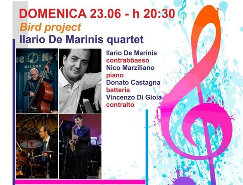 Domenica 23 giugno "Bird Projet", il prossimo concerto del quartetto di Ilario De Marinis che vuole rendere omaggio alla statura gigante del sassofonista e compositore Charlie Parker, sicuramente uno dei musicisti più innovativi ed influenti dell’intera storia del jazz. Il repertorio di Parker, soprannominato“bird”, appunto, per la maniera con la quale suonava, poiché “volava letteralmente” sullo strumento, andando sugli acuti, sarà eseguito dal giovanissimo talento ruvese Vincenzo Di Gioia al sax contralto, un vero enfant prodige di soli 16 anni, sostenuto dalla solida e rodata sezione ritmica formata da Nico Marziliano al piano, Donato Castagna alla batteria e Ilario De Marinis al contrabbasso. De Marinis, qui in duplice veste perché anche direttore artistico dell’intera rassegna, vanta nella sua carriera il privilegio di aver suonato con un altro grande, il trombettista Chet Baker, un altro straordinario musicista consegnato alla storia del jazz. «La rassegna, che durerà sino al 29 settembre, - secondo il direttore artistico - ha l'obiettivo di proseguire l'attività di divulgazione del jazz e dello swing intrapresa durante il periodo invernale dal Dino Risi Jazz Corner di Trani».