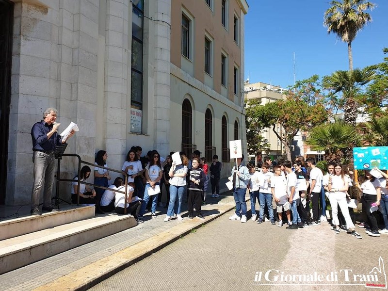 Sono gli alunni della scuola media Rocca Bovio Palumbo, che nella mattinata di oggi, venerdì 24 maggio, con il patrocinio del Comune di Trani, hanno manifestato attivamente «sporcandosi le mani» nella terra, intonando slogan e preannunciando altre iniziative simboliche.