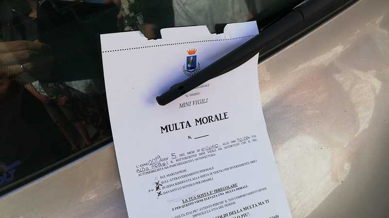 Il comandante della Polizia locale di Trani, Leonardo Cuocci Martorano, ha detto: «Stiamo affiancando i ragazzi per far comprendere loro le operazioni che svolgiamo, e per far vedere quali sono le regole che gli automobilisti non rispettano, in sfregio ai pedoni. La “multa morale” fa effetto sul cittadino perché fa sentire l’utente quasi “rimproverato” da un minore».