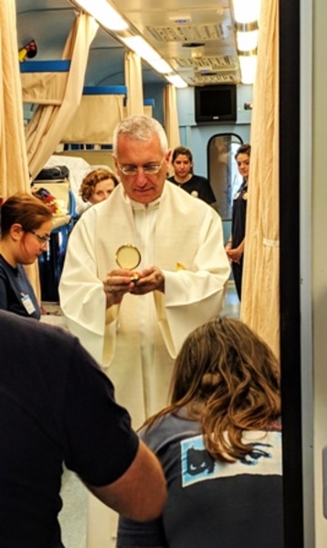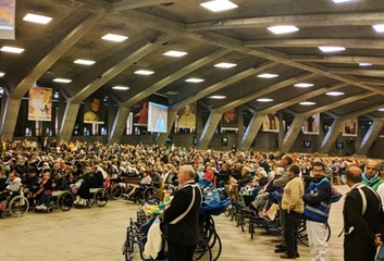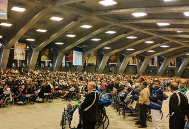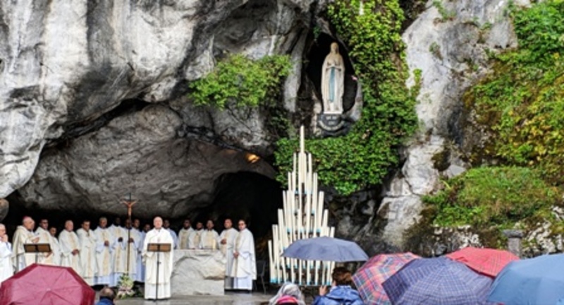 Dopo il viaggio in treno (e in aereo) e l'arrivo il giorno 13, il programma, in parte rivisitato per via della pioggia che ha accompagnato il primo e secondo giorno, ha visto la celebrazione dell'apertura del pellegrinaggio alla chiesa di Santa Bernadette e l'accensione del cero alla grotta.