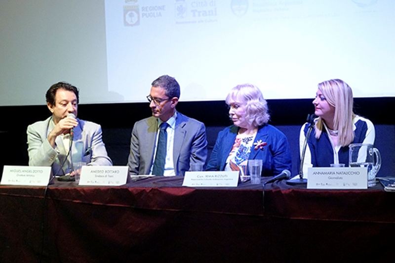 Alla conferenza stampa, moderata da Annamaria Natalicchio, sono intervenuti il Cav. Irma Rizzuti, responsabile culturale dell’Ambasciata Argentina, Amedeo Bottaro, sindaco della città di Trani, e la star Miguel Angel Zotto, direttore artistico del Festival del tango di Trani. Zotto, leggenda vivente del tango, riconosciuto da pubblico e critica come il miglior ballerino al mondo, è anch’egli “figlio” di emigrati - il nonno Michele Arcangelo Zotta partì da Campomaggiore in Basilicata alla fine dell’Ottocento alla volta dell’Argentina (il cognome mutò in Zotto per un errore di trascrizione sul registro argentino degli immigrati). Presenti a Roma anche Felice di Lernia, Assessore alla cultura della città di Trani el’omonimo cerimoniere del Comune di Trani, non potevano mancare Claudia Vernice e Giuseppe Ragno, responsabili dell’associazione culturale Inmovimento.