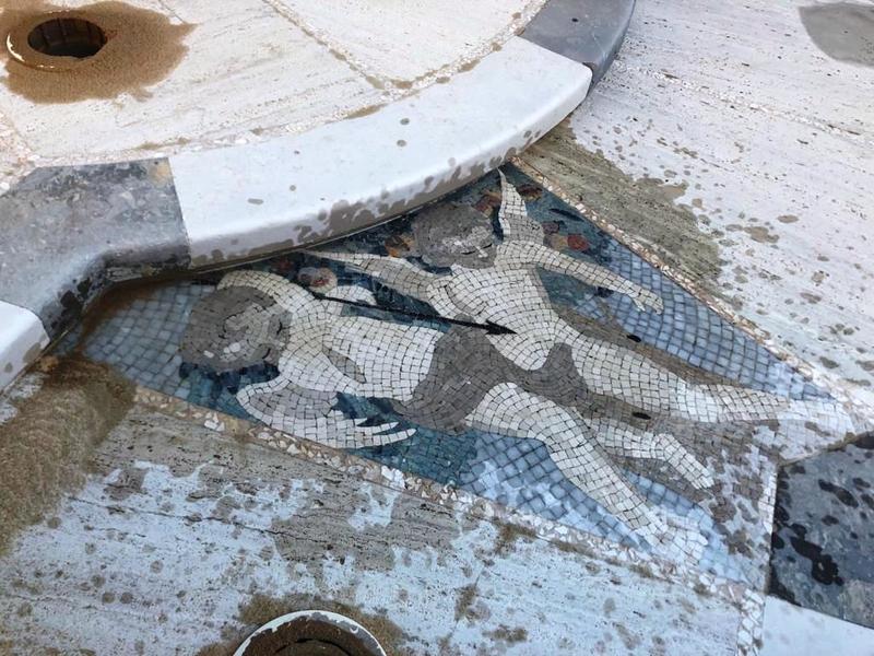 Grazie a quest'operazione, sul fondo della vasca è riemerso anche il mosaico ornamentale ai piedi degli scalini.