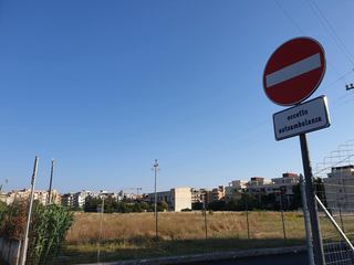 Infatti, per chi provenga da via Falcone, c'è un doppio divieto di accesso che, se violato con il proprio veicolo, immette in un vicolo cieco chiuso da una fila di semisfere in pietra e due new jersey in plastica che chiudono completamente l'accesso alla restante area dell'ex ospedale di Trani.