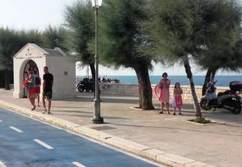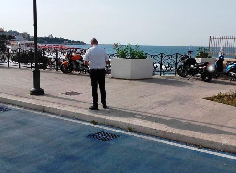 Le alternative per parcheggiare le moto correttamente, sul lungomare, non sembra ci siano: un lato della carreggiata è impegnato dalla pista ciclabile, mentre dalla parte opposta ci sono stalli soltanto per le auto, prevalentemente circondati dalle strisce blu in quanto parcheggi a pagamento.