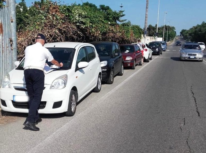 Non sono mancate sanzioni anche per i veicoli, soprattutto sulla ex Statale 16 e per i soliti parcheggiati sull'istmo di via Grado, a pochi passi dal piazzale del Monastero di Colonna.