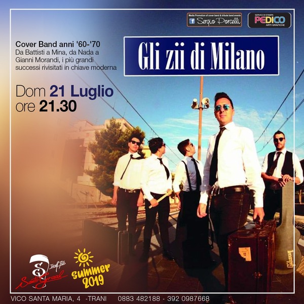 Domenica 21 luglio al Santo Graal in vico Santa Maria 4 di Trani arrivano Gli zii di Milano, la cover Band anni '60-'70.