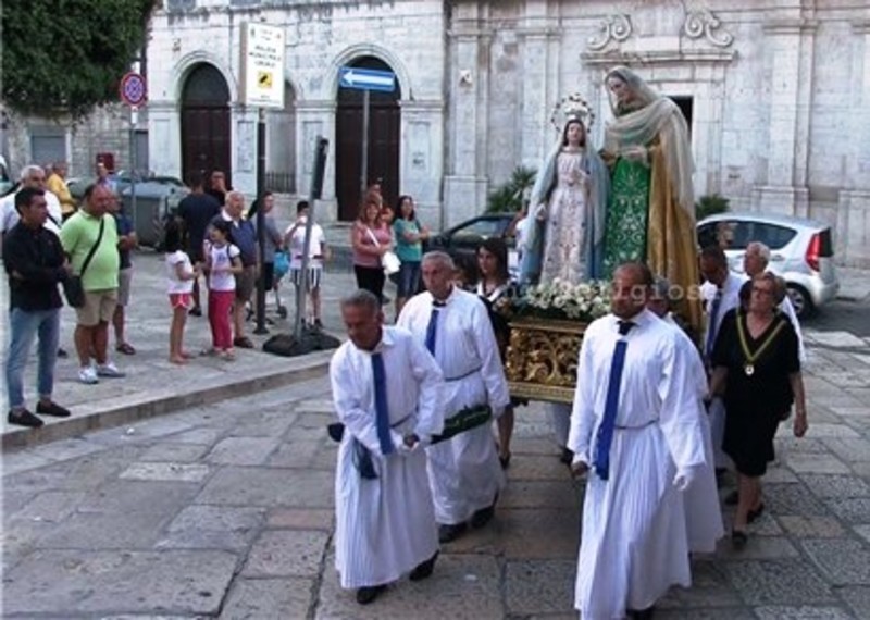 Alle 19.30 circa invece, alcuni componenti della confraternita, unitamente al Padre spirituale, don Michele Cirillo, hanno portato la Sacra Immagine di Sant'Anna, al rientro dal restauro, dall'Auditorium San Luigi fino al piazzale antistante la chiesa di San Giovanni, dove S.E. Mons. Leonardo D'Ascenzo ha presieduto la celebrazione eucaristica.