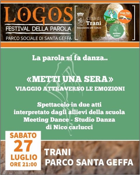 Continuano gli appuntamenti con il "Logos Festival", una nuova iniziativa nata dalla collaborazione tra il Comune di Trani Assessorato alle Culture, la Coop. Xiao Yan Rondine che ride ed una rete di associazioni culturali presenti sul territorio. L’idea nasce da un interrogativo: ci siamo chiesti se da: “In Principio era il Logos (Verbo)” la Parola, l’annuncio del Vangelo di S.Giovanni ai “like” dei moderni Social Network, le parole abbiano ancora senso.