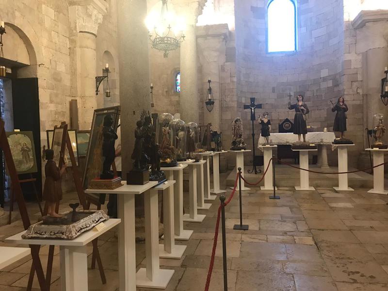 La mostra conta numerosi i pezzi esposti: statue di nobili famiglie tranesi del 1700 fino a quelle degli artisti locali che nei primi del Novecento hanno realizzato statue da venerare in casa. Diversi anche i materiali utilizzati come il legno policromo della prima metà del 1900, cartapesta, terracotta della prima metà del 1800 e diverse lavorazioni in gesso.