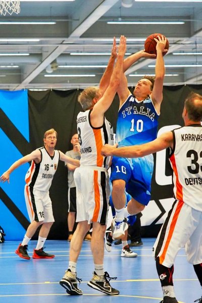 C'è una doppia Trani nell'Italia Over 55 che sta disputando i Campionati mondiali di categoria a Espoo, in Finlandia, dove ha chiuso al primo posto il girone eliminatorio con 3 vittorie su 3. Il «purosangue» Tonio Caio e l'«adottato» Gianfranco Lenzu hanno contribuito in maniera significativa alle vittorie in fila arrivate contro Brasile (55-51), Finlandia (53-40) e Germania (44-38).