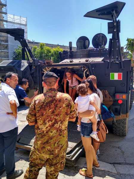 L'iniziativa ha fatto il paio con quella realizzata alcune settimane fa in piazza Marinai d'Italia, nei pressi del lido militare, ma questa volta l'impatto è stato decisamente più importante, poiché realizzata proprio in piena festa patronale, potendo contare così sull'incontro con un gran numero di cittadini, quanto meno incuriositi dall'insolita presenza delle divise dell'Esercito in piazza Plebiscito.