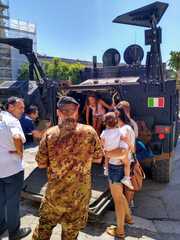 Fra i mezzi, che fanno parte del progetto Forza Nec, il Freccia e il Lince. E, così, grandi e piccoli hanno colto l'occasione di farsi fotografare a bordo degli stessi.