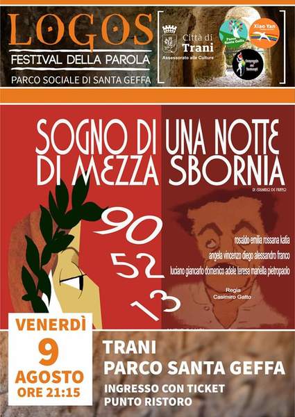 Continuano gli appuntamenti inseriti nella rassegna Logos Festival, un’iniziativa nata dalla collaborazione tra Comune di Trani assessorato alle culture e il parco S.Geffa.