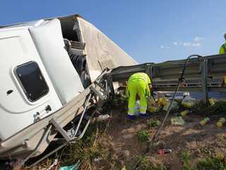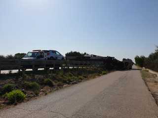 Sul posto Vigili del fuoco, Polizia locale di Trani e personale dell'Anas, mentre invece un altro mezzo pesante ha recuperato il carico disperso dal tir incidentato, che trasportava bottiglie di acqua, bibite e integratori.