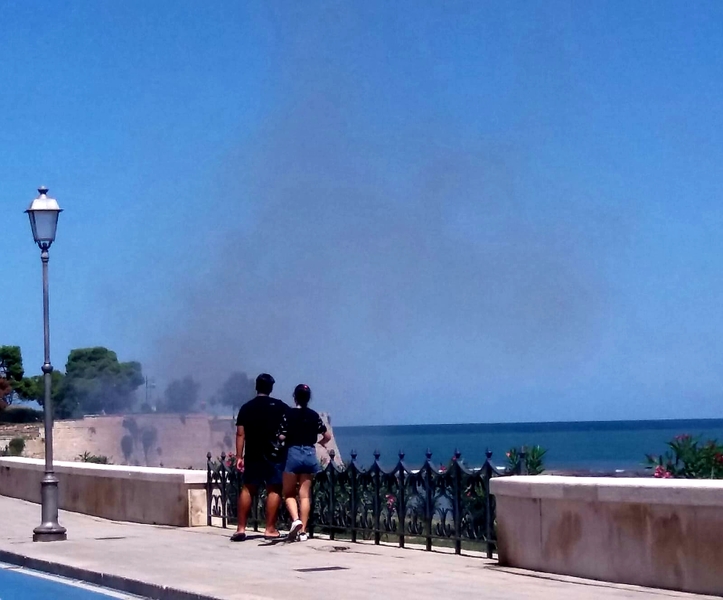 Per cause da accertarsi Il vento ha alimentato un rogo il cui fumo, particolarmente intenso, si è diffuso in tutta l'area.