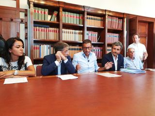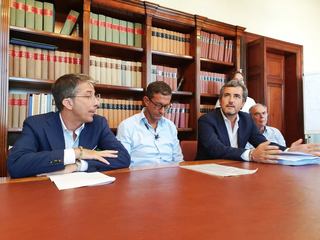 Così il sindaco Amedeo Bottaro introducendo la presentazione del nuovo sistema di pagamento della sosta. Al suo fianco il presidente di Amet Spa, Francesco De Marinis, l'Amministratore delegato, Giuseppe Paolillo, ed il componente del Consiglio di amministrazione Serena Cannone.