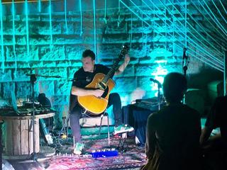 Ieri sera Sergio Altamura, chitarrista di origine molfettese, ha eseguito un concerto di suoi brani inediti in solo con chitarra acustica e sintetizzatori.