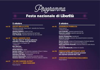 A seguire verranno premiati in piazza i Liberattivi, i diffusori del mensile LiberEtà che ogni giorno si impegnano per far conoscere sempre di più la rivista e il Sindacato Pensionati della Cgil.