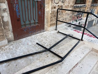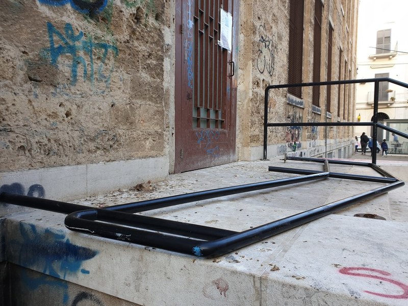 È accaduto l'altra notte in via Giustina Rocca, dove ignoti hanno letteralmente scardinato e scaraventato via uno dei due corrimano della scalinata di ingresso ed uscita laterale della scuola elementare De Amicis.