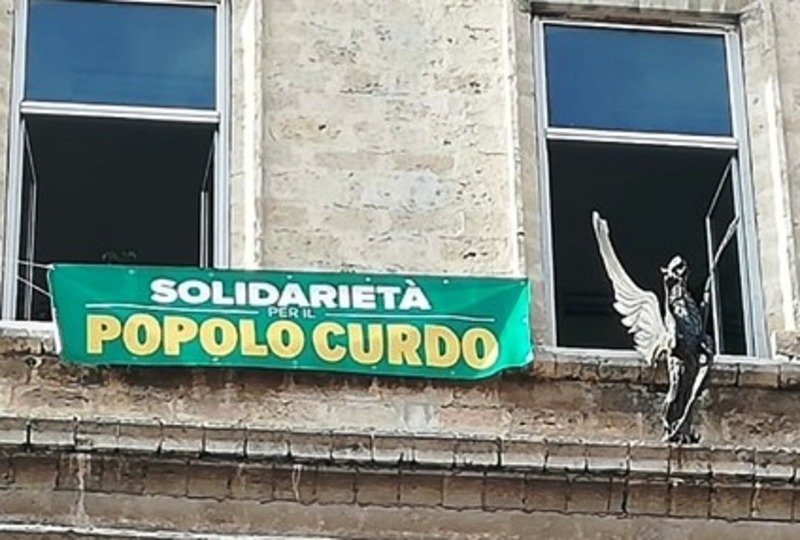 Nel frattempo, l'amministrazione comunale ha esposto, sulla facciata del palazzo di città, uno striscione di solidarietà alla stessa gente che oggi, sta subendo l'offensiva militare da parte della Turchia.