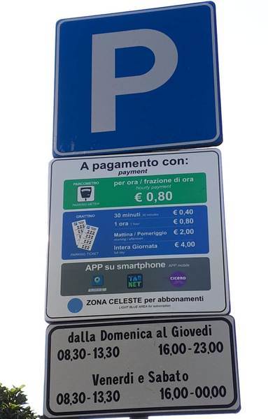 Il pagamento avviene tramite 20 parcometri, funzionanti con monete o carte, schede prepagate (volgarmente definite «grattini»), acquistabili nelle attività commerciali presenti in zona e applicazioni per smartphone, in particolar modo Mycicero, Tabnet e Telepass Pay.