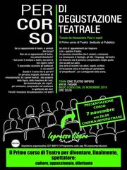 Il “per-corso di degustazione teatrale”, a cura di Alessandra Pizzi, è un metodo nuovo e originale per avvicinare il teatro al pubblico e il pubblico al teatro, un percorso di conoscenza, avvicinamento, approfondimento, al teatro, rivolto al pubblico degli appassionati e dilettanti, a tutti coloro che vogliono coltivare la loro passione, ma anche a quelli che vorrebbero trovare una passione, un itinerario “de gustativo” di generi, autori, registri, drammaturghi, in cui incontrare il Bardo di Avon, familiarizzare con la commedia, appassionarsi ai classici, e imparare a guardare con occhi critici le rappresentazioni teatrali con un’unica consapevolezza: il miglior spettatore che uno spettacolo possa avere è sempre quello consapevole.