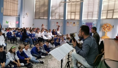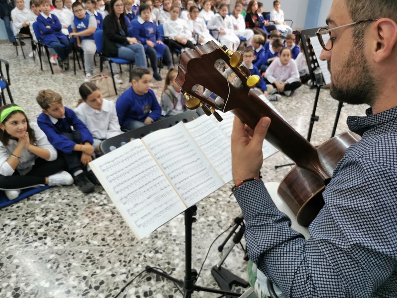 Lunedì 28 ottobre, presso l’aula magna della scuola primaria “Mons. Petronelli” di Trani si è tenuta un’interessantissima lezione concerto sul duo chitarra e clarinetto, con Giacomo Piepoli, clarinettista direttore artistico orchestra filarmonica pugliese, e Marco Corcella, chitarrista e docente di liceo musicale. Un itinerario volto alla scoperta di alcune caratteristiche delle composizioni musicali e di come un duo possa simulare una grande orchestra.