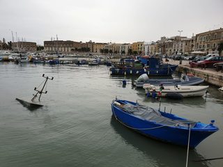 È in attesa delle operazioni di recupero il relitto di un piccolo peschereccio, affondato ieri mattina al porto di Trani, nei pressi della zona absidale della Chiesa dei Templari.