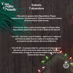 La pinetina della parrocchia di Santa Maria delle Grazie, invece, ospiterà nel week end dell’Immacolata (7 e 8 dicembre) un doppio appuntamento. L'associazione culturale e ricreativa "La Filastrocca", in collaborazione con la chiesa, il gruppo scout Agesci Trani 2 e l'associazione Trani Soccorso, organizza il "mercatino delle Grazie". L'evento prevede gazebo espositivi, attrazioni folkloristiche, animazione per i più piccoli e passeggiate in carrozza nelle vie del quartiere. Alle 18 è prevista l’apertura degli stands, alle 19 la santa messa e alle 20 gran falò e serata a cura del gruppo scout AGESCI Trani 2, arrivo di babbo Natale con i suoi elfi, consegna letterine, foto ricordo e giro in carrozza per tutti.