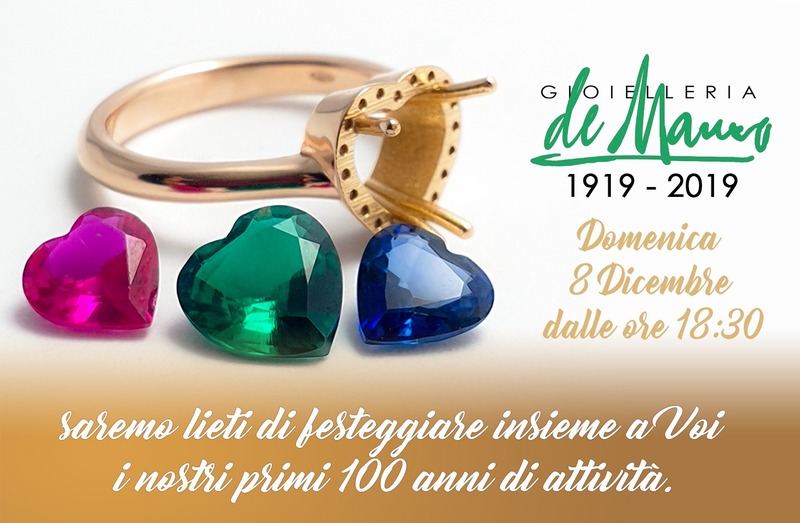 1919-2019. 100 anni di attività, successi, sacrifici ed entusiasmo per la gioielleria de Mauro di Trani che domani aspetta tutti nella sua boutique in corso Vittorio Emanuele 309 per festeggiare insieme e scambiarsi gli auguri di un felice Natale.