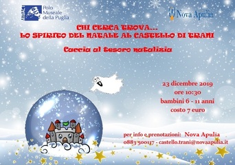 Domani, lunedì 23 dicembre, alle 10.30, presso il castello svevo, Nova Apulia proporrà un laboratorio ludico-didattico durante il quale i piccoli partecipanti andranno alla scoperta delle sontuose sale del castello medievale e della leggenda del fantasma di Armida. Il tutto avverrà sullo sfondo del magico Natale, narrato da Charles Dickens in “A Christmas carol”. L’attività è rivolta a bambini dai 6 agli 11 anni e avrà una durata di due ore. Prenotazione obbligatoria, costo 7 euro, minimo partecipanti 15, info 0883.500117.