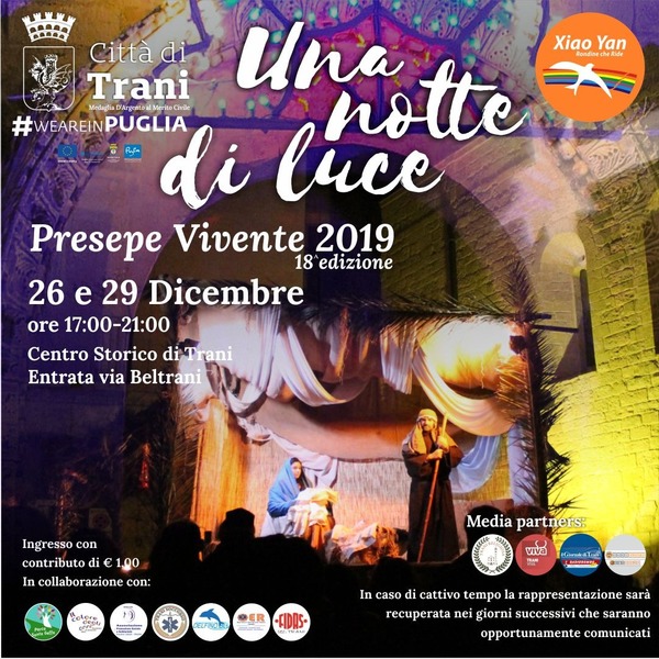 Quest’anno, per la diciottesima edizione, il centro storico di Trani sarà trasformato nella Betlemme dell’anno Zero, quando la nascita di Cristo divenne la vera Luce per gli uomini.